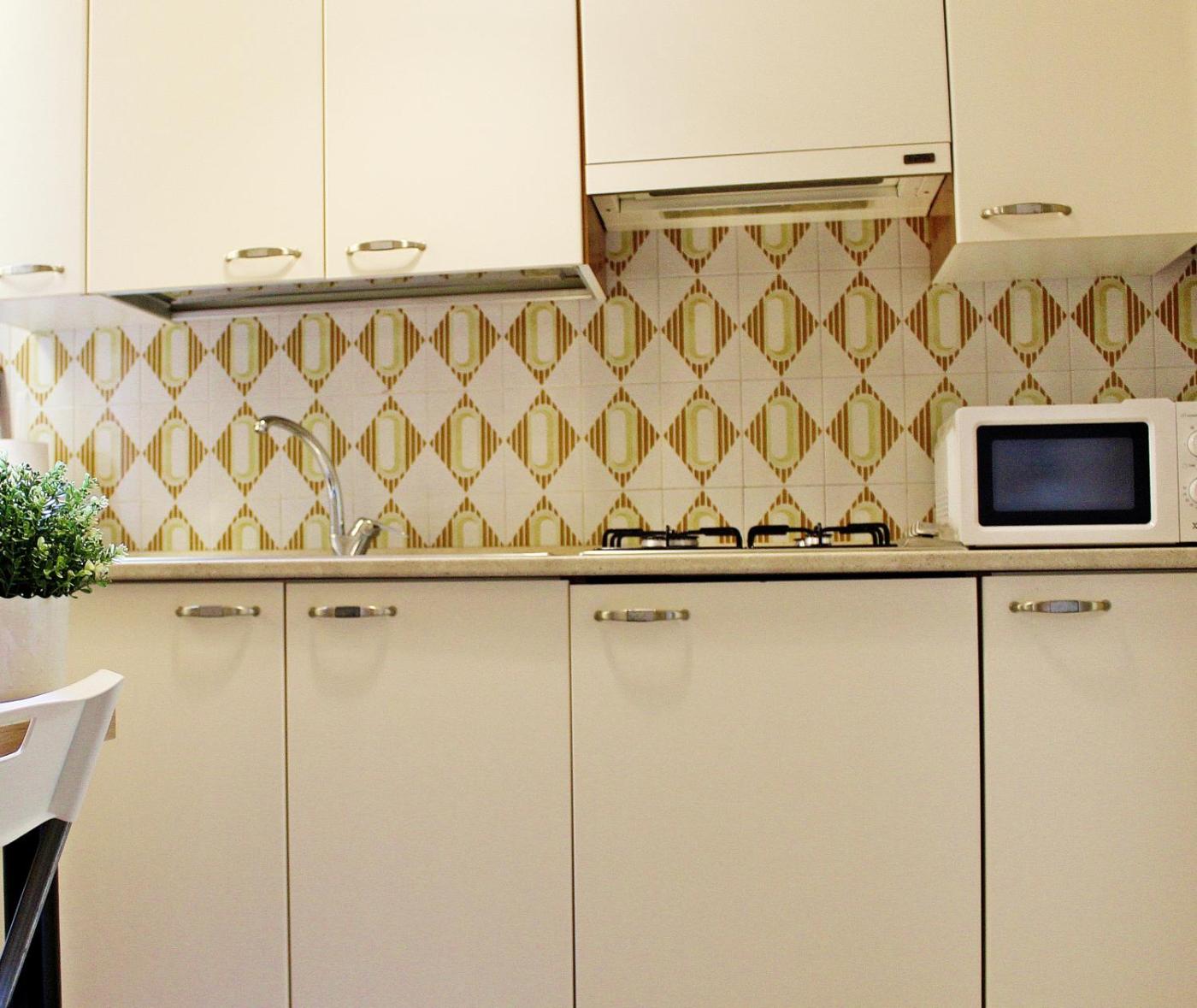 Appartamento con 2 Camere da Letto. The apartment features 2 bedrooms and 1 bathroom with a shower and free toiletries. The well-fitted kitchen has a stovetop, a refrigerator, kitchenware and a microwave. The apartment provides a minibar, a wardrobe, a tiled floor, a flat-screen TV, as well as ancourtyard view. The unit offers 2 beds.