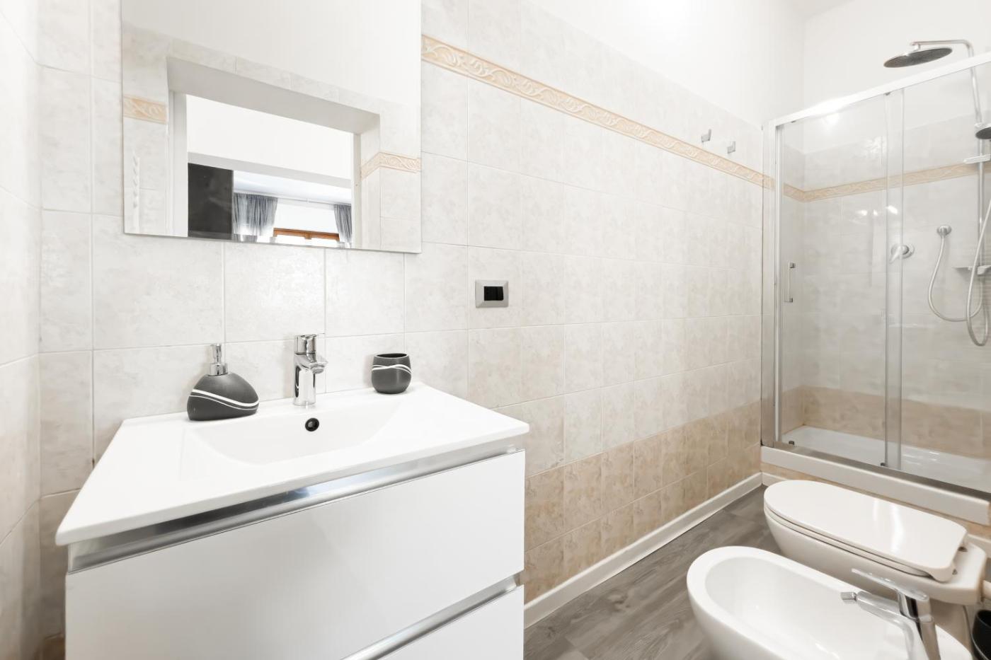 Appartamento con 1 Camera da Letto. The air-conditioned apartment features 1 bedroom and 1 bathroom with a bidet and a hairdryer. Guests can make meals in the kitchen that comes with a stovetop, an oven and a tea and coffee maker. This apartment has a dining area, heating and a flat-screen TV. The unit offers 2 beds.