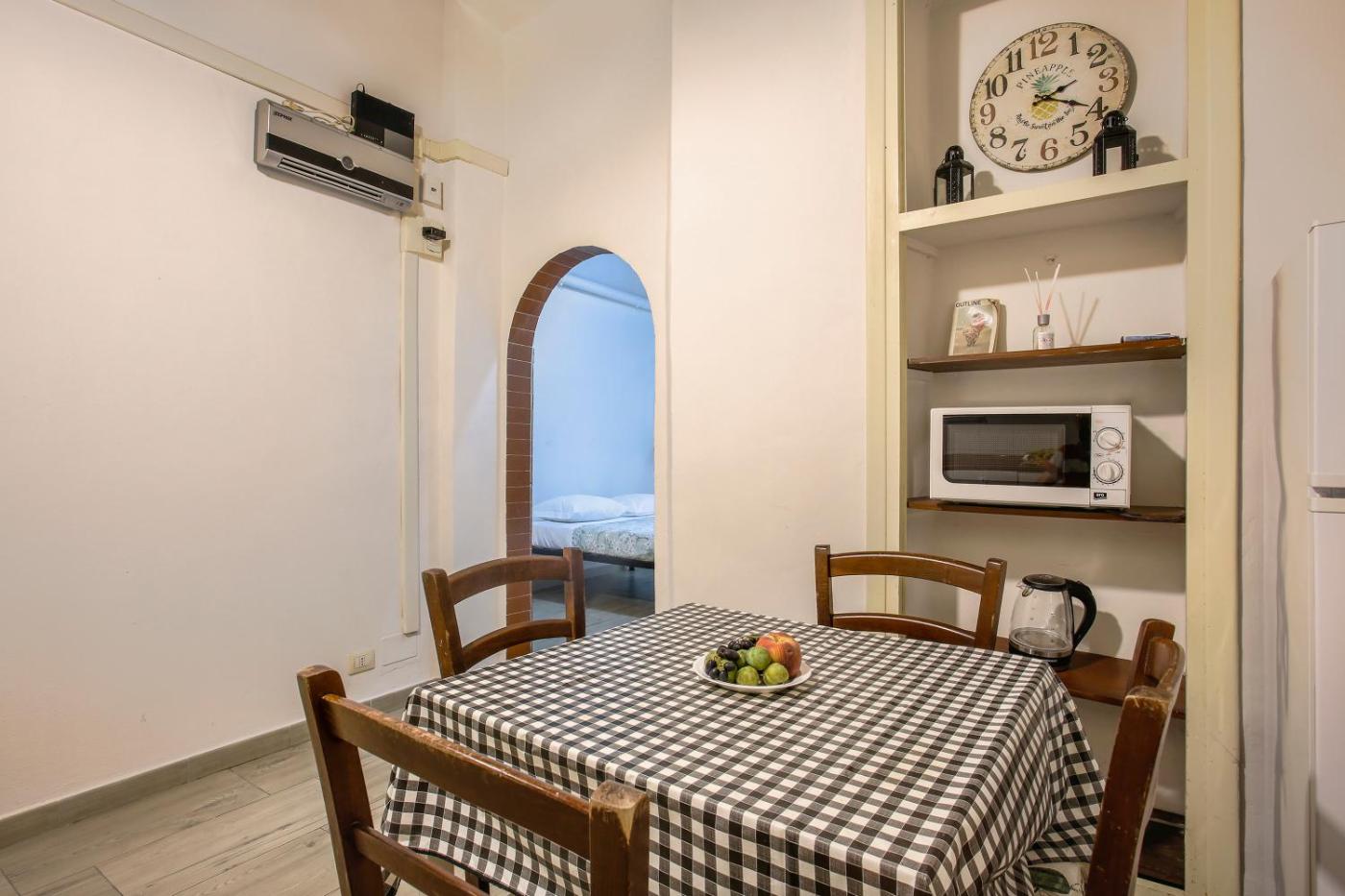 Questo appartamento con aria condizionata comprende 1 camera da letto, un soggiorno, una cucina con utensili più frigorifero, e 1 bagno con bidet edi cortesia. Presso questo appartamento troverete asciugamani e lenzuola tra i servizi disponibili.