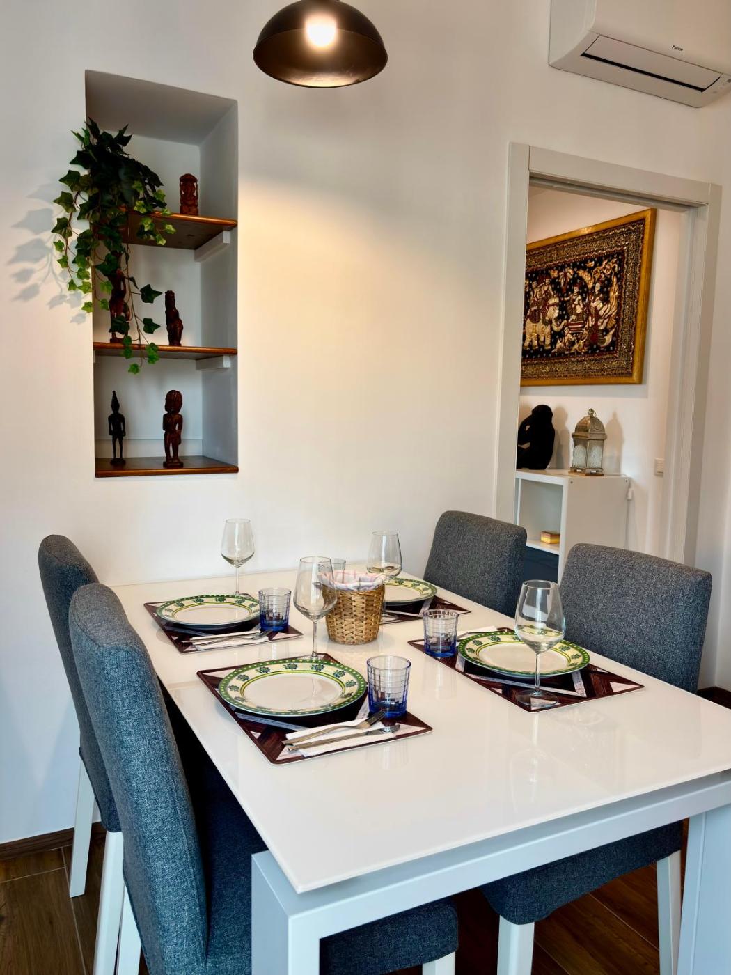 Questo appartamento con aria condizionata comprende 1 camera da letto, un soggiorno, una cucina con utensili, frigorifero e macchina da caffè, e 1 bagno con doccia edi cortesia. Presso questo appartamento troverete asciugamani e lenzuola in dotazione.
