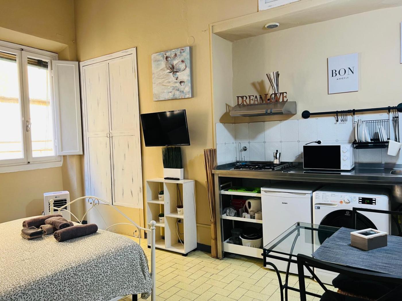 Monolocale. The studios kitchenette is available for cooking and storing food. This air-conditioned studio features a private bathroom, a washing machine and heating. The unit offers 1 bed.