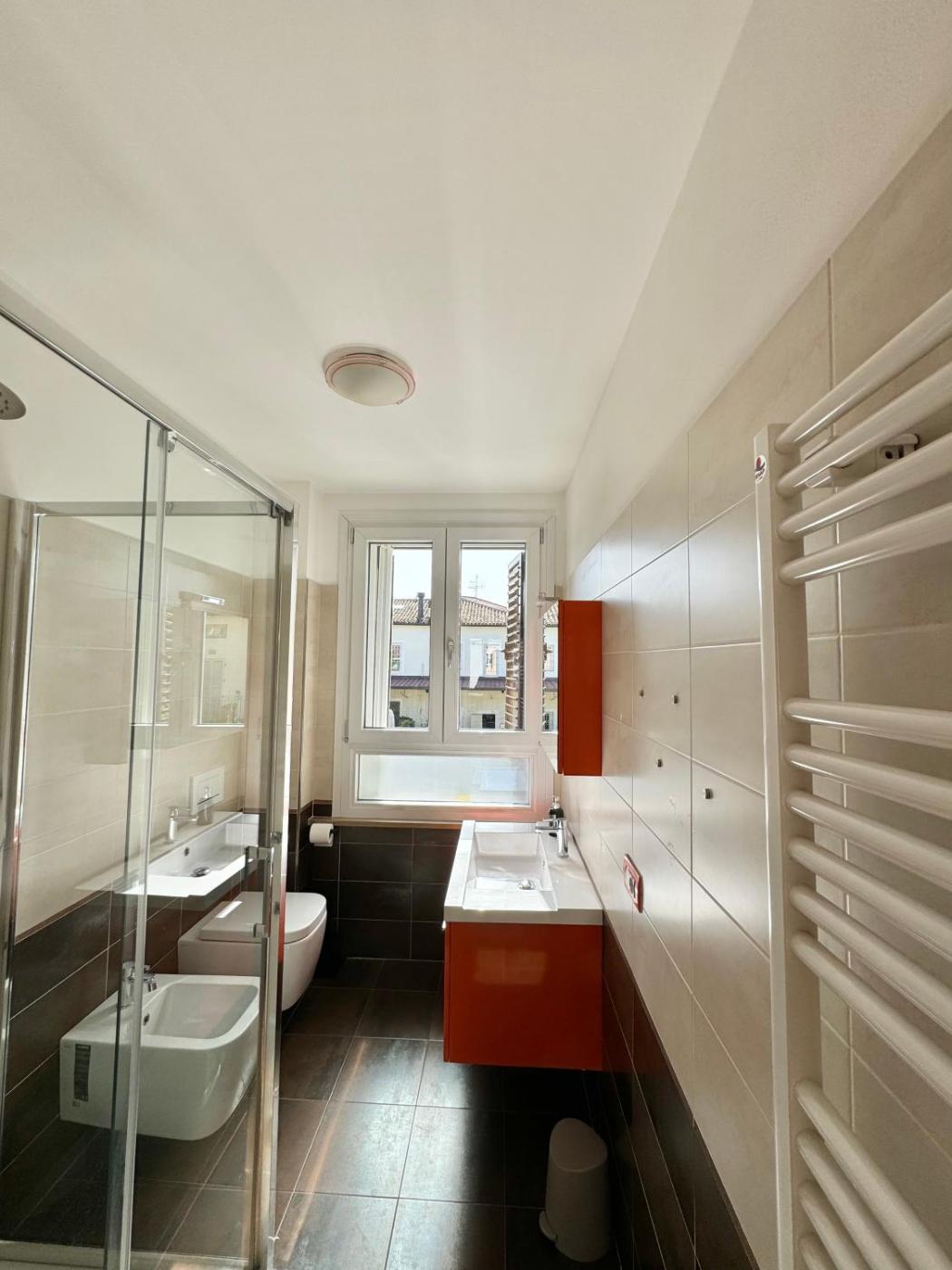 Appartamento con 3 Camere da Letto. Guests can make meals in the kitchen that is equipped with a stovetop, a refrigerator, a dishwasher and kitchenware. The spacious apartment provides air conditioning, a tea and coffee maker, a balcony with ancourtyard view as well as a shared bathroom featuring a shower. The unit offers 4 beds.