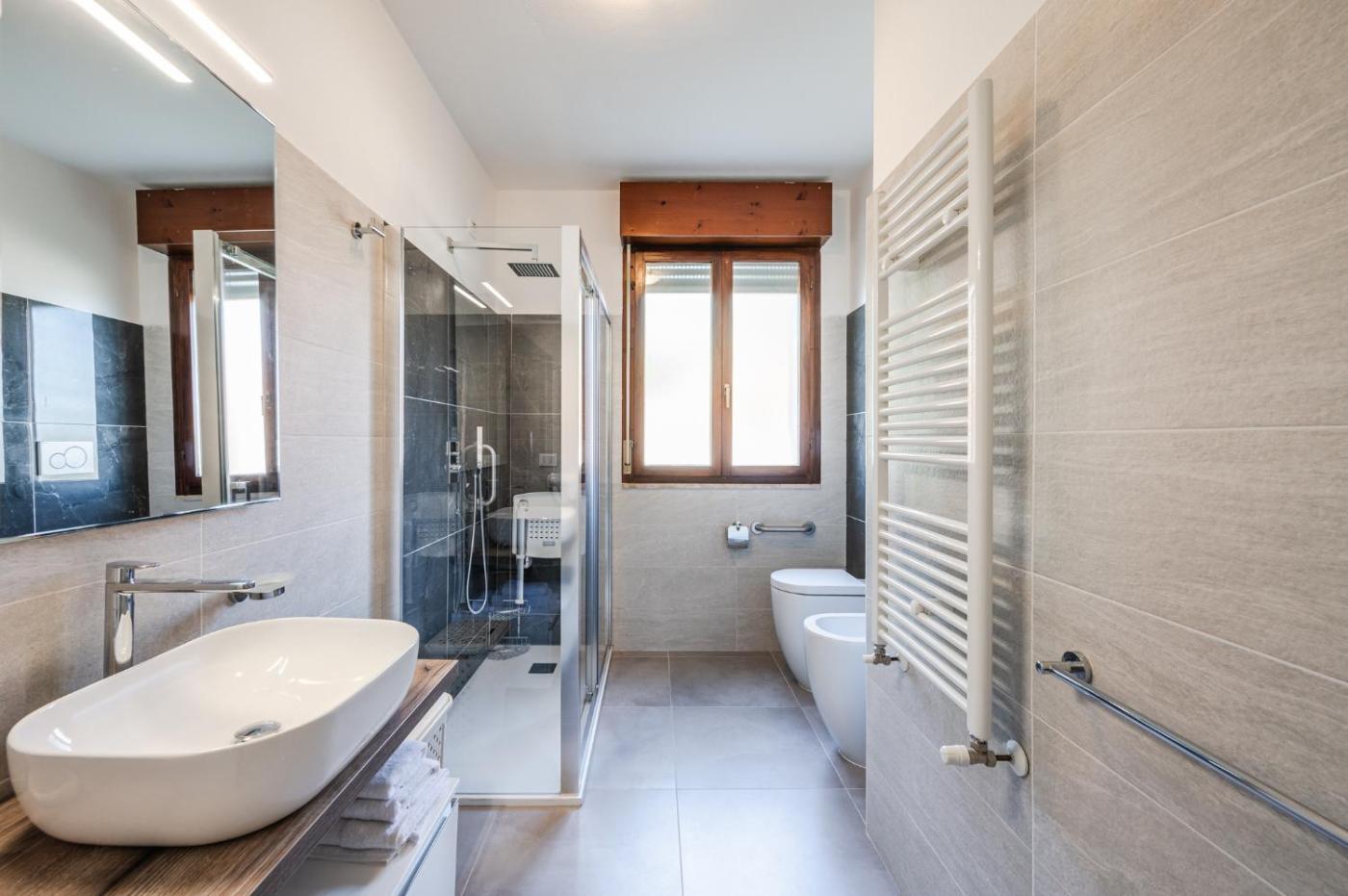 Appartamento con 2 Camere da Letto. This spacious apartment is comprised of 1 living room, 2 separate bedrooms and 2 bathrooms with a shower and free toiletries. Guests can make meals in the kitchen that is fitted with a stovetop, a refrigerator, kitchenware and an oven. Featuring a terrace with garden views, this apartment also offers a washing machine and a flat-screen TV with streaming services. The unit offers 4 beds.