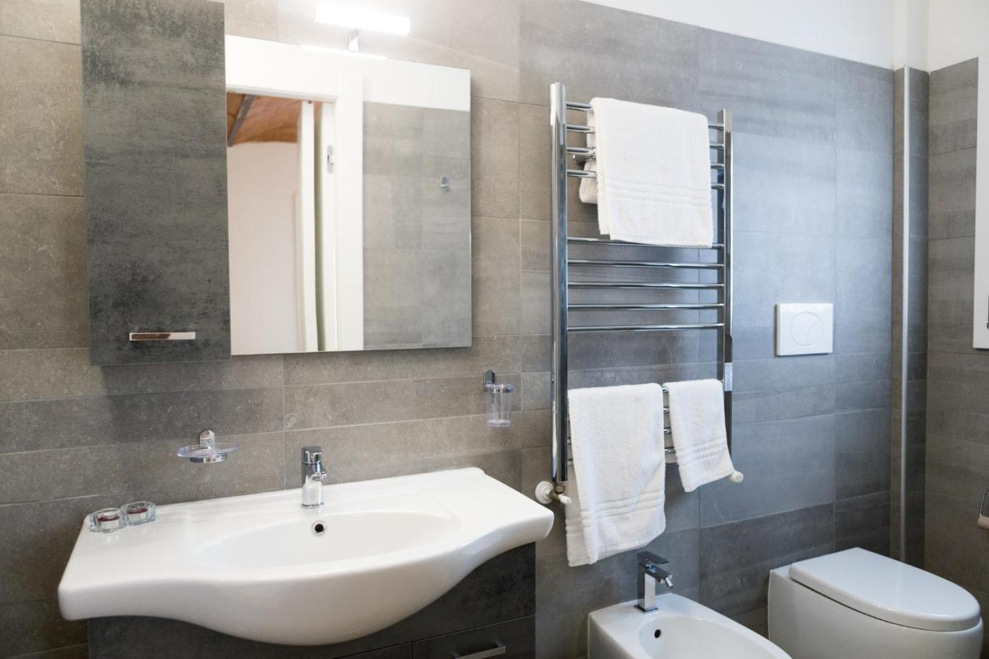 Camera Matrimoniale con Bagno Privato. The spacious double room provides air conditioning, a minibar, as well as a private bathroom featuring a shower and a bidet. The double room features a flat-screen TV, a coffee machine, a dining area, a wardrobe as well as a quiet street view. The unit offers 1 bed.